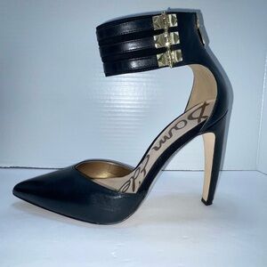 Sam Edelman | Black | Stiletto with Ankle Strap | Gold Buckle | 8.5