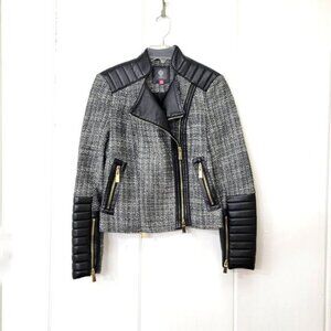 Vince Camuto Tweed and Faux Leather Moto Jacket