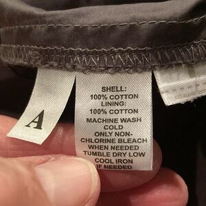 Beautiful fit and 100% cotton fabric, v-neck, back zipper, classic style, beautiful brownish gray color, 37 inch dress, 18 inches pit to pit, 15 1/2 inch waist, 20 inch hips, great condition