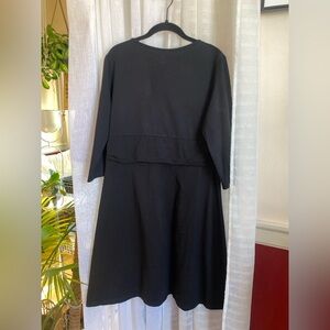 Patagonia Organic cotton black dress. Size X large. V neck. 3/4 inch sleeve. Flare skirt. Organic cotton and spandex. Preowned great condition.