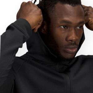 Lululemon City Sweat Full-Zip Hoodie XL Black 23.5 x 27" D/C Rare. In excellent condition. Small embroidered blue arrow on bottom-right rear of the hem made post purchase.