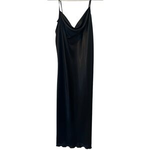 NWT Bebe SATIN COWL NECK SLIP MIDI DRESS Size Large - Black MSRP $69