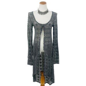 Vintage Free People Beach Gray Crochet Button Front Maxi Cardigan