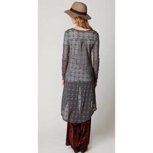 Free People Beach Vintage Gray Crochet Button Front Maxi Cardigan