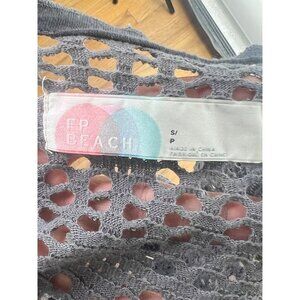 Vintage gray beach maxi cardigan with a button front design and intricate crochet details. This Free People creation offers a cozy yet stylish layer for your beach outings or casual day outs.