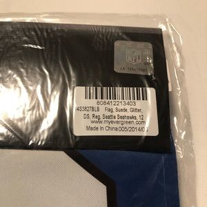 NFL Seattle Seahawks Decor Flag 12s Suede Glitter 2 Sided New c. 2014 12.5x18"