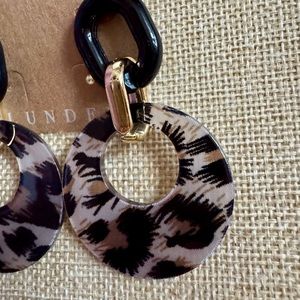 BRAND NEW - Plunder Leopard Print and Gold Earrings - lovely neutral leopard and gold earrings for a splash of print - black, brown and gold - pretty little statement earrings with a classic look