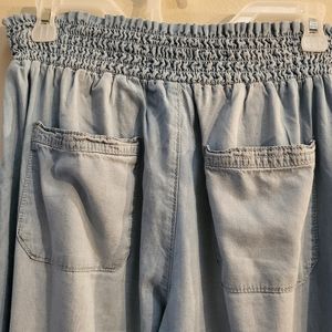 These light blue, high-rise wide-leg pants offer a perfect blend of comfort and style. Featuring a relaxed fit with a drawstring waist for an adjustable fit and convenient pockets for functionality, they’re ideal for both casual and dressy occasions. Pair them with a simple tee for a laid-back look or dress them up with a blouse and accessories for an effortless vibe.