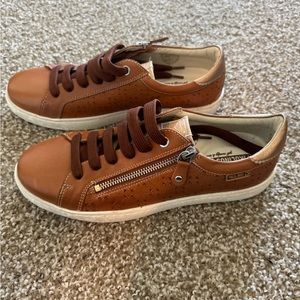 Step out in style with these brown leather sneakers. Perfect for casual outings, these shoes offer both comfort and elegance.