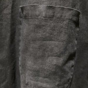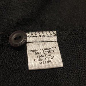 Gently Loved FLAX 100% Linen, Black, button down top , pockets to each thigh. pit to pit 50", bust 50", length 33"