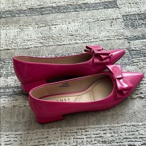 Step out in style with these chic pink flats from Journee Collection. Featuring a charming bow detail, these shoes add a playful touch to any outfit. Perfect for both casual and formal occasions.