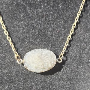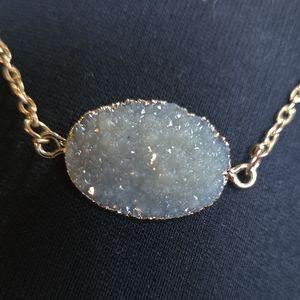 This elegant gold necklace features a stunning quartz drutzy natural stone that is gray in color. This is a gold plated chain that is adjustable. Perfect for adding a touch of sophistication to any outfit. Please ask questions and make an offer. I can't say yes if you don't ask!