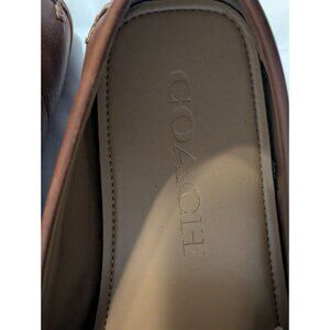Crafted with the modern gentleman in mind, these COACH Mott Driver Horse Bit loafers effortlessly combine sophistication with comfort. The rich brown leather upper, complemented by the distinctive horse bit detail, lends a classic touch to any ensemble. Designed for ease, their slip-on moccasin style ensures a comfortable fit without compromising on style.The loafers feature a durable leather outsole, a soft leather lining, and a cushioned insole, making them ideal for all-day wear. Whether for casual outings, travel, or workwear, these size 11.5 (EU 43) shoes offer versatility and comfort across seasons—perfect for fall, spring, and summer.