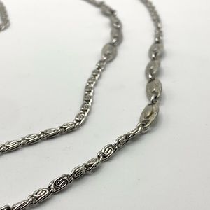 Chic silver chain necklace with unique swirl patterns. Ideal for any outfit.