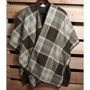 Woolrich Blanket Wrap One Size Brown Plaid Reversible Fleece Cape Shawl Poncho