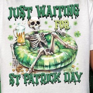 Just Waiting For St Patrick Day Tee, Skeleton Shirt, St. Patrick's T-Shirt