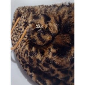 Vintage Cheetah faux Fur Handbag with Bamboo Handles features a brown and black exterior with applique accents and a red cotton lining. The medium-sized satchel/top handle bag has a rectangle shape, magnetic/snap closure, and double bamboo handles with a 3-inch drop. It measures a 16 inches wide by 8 inches high. What a fun addition to add to your wardrobe or purse collection!