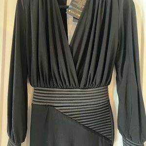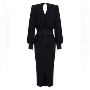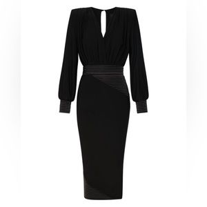 NWT! From the Signature Collection. Crafted of a stretch jersey, ZHIVAGO's balloon-sleeve Lover Man midi-dress features stitched satin inserts and a large keyhole back cut out.