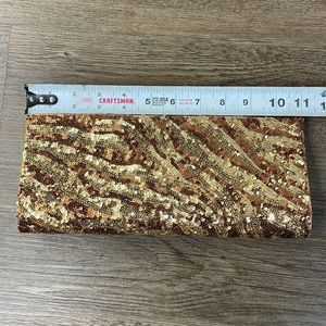 Nordstrom Women’s Bronze Gold Copper Sequin Clutch. In excellent used condition- a few signs of wear shown in pictures. See pictures for wear and condition.