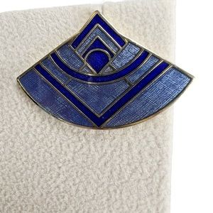 ROMAN Cobalt Blue Enamel Inlay Art Deco Style Fan Pierced Earrings