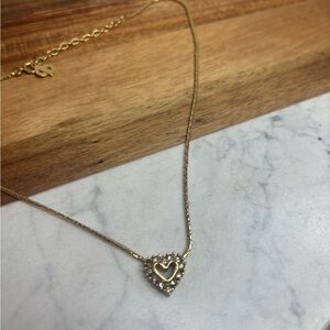 Elegant gold heart pendant necklace with sparkling accents. Perfect for adding a touch of sophistication to any outfit.