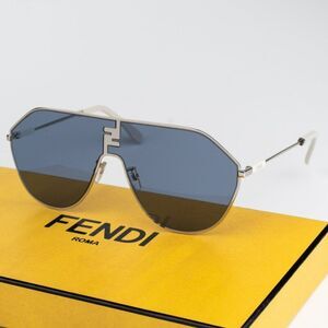 NEW Fendi FE40080U FF MATCH 16V Shiny Palladium Blue Unisex Round Sunglasses