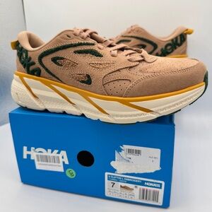NWT Hoka Clifton L Embroidery UNISEX Shoes Leather Brown Sirrocco Mountain View