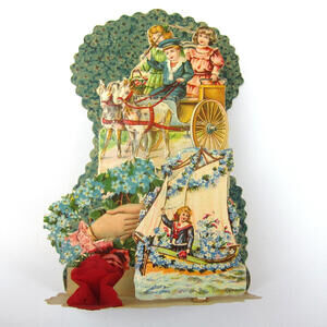 Antique Valentine Honeycomb 3D Pop Up Ship Boy Sailor Suit Girls Carriage LARGE