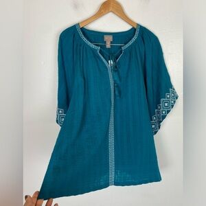 Lane Bryant Button Down 3/4 Sleeves Shirt Size 22/24 Stripes Cream Stretch
