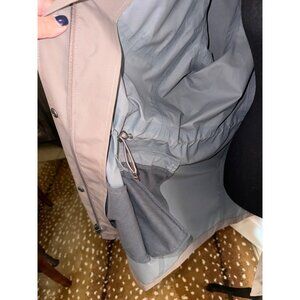 Lands End Traveler Hooded Waterproof Utility Jacket Coat Cinch Waist M Tan Light