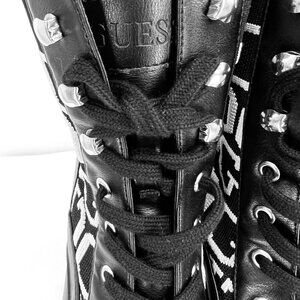 GUESS Women's Grows-R Ankle Boots Knit Logo Platform Black/White Size 8.5 NWOB