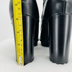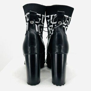GUESS Women's Grows-R Ankle Boots Knit Logo Platform Black/White Size 8.5