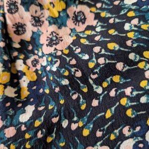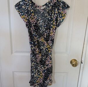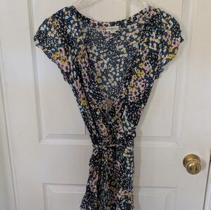 Summery, flirty and feminine romper. Colorful floral. Like new without tags. Short flutter sleeves, floral print romper with pockets, elastic waist, removable tie close and snap. New without tags. Size SP