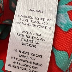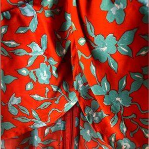 Red turquoise floral printed satin (60% recycled polyester 40% polyester).