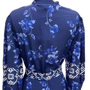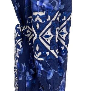 CELINA MOON PRINTED BLUE BOHEMIAN DRESS SIZE L