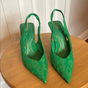 Step out in style with these vibrant green slingback heels. Perfect for adding a pop of color to any outfit. Please see defect on the sling back other than that perfect condition. Please ask any questions prior to purchase these have a call out final sale please read description prior to purchase.