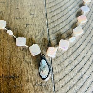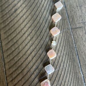 34" BEAUTIFUL AKOYA COLOR SQUARE PEARLS; WIRE WRAPPED ON STERLING SILVER WITH CRYSTAL CHARM; NEW; MSRP $95.00; OUT OF BOX