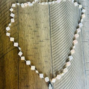 34" NECKLACE PEARL COLOR SQUARE PEARLS; STERLING SILVER CRYSTAL CHARM; NEW