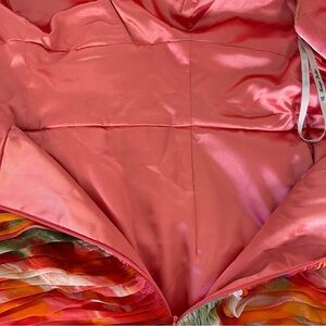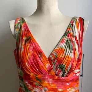 NWT Monique Lhuillier Silk Midi Dress Floral Orange Multicolor Pleated Size 12