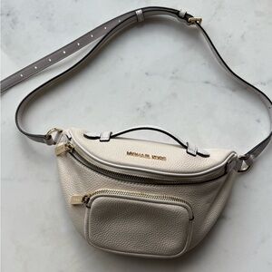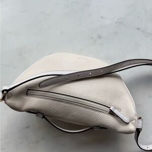 Elevate your style with this Michael Kors cream leather crossbody bag. Perfect for any occasion, it combines elegance and functionality.