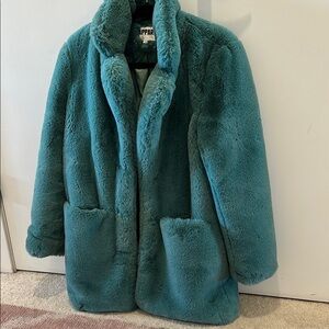 Apparis Stella Emerald Teal Green/Blue Faux Fur Coat Size Small