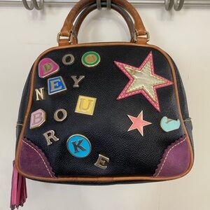 Dooney & Bourke Black and Purple Satchel with Whimsical Design