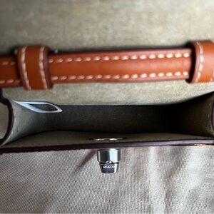 Like new accessory! Only used once. This is a very cute crossbody wallet in a gorgeous amber color with pops of color. Definitely eye-catching! To me, this is great for concerts or other outings where you only want to carry chapstick, case, cards, and/or a car key fob.
