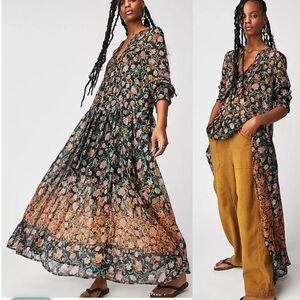 NWT Free People Women's See It Through Floral Long Sleeve Maxi Dress Sz S
