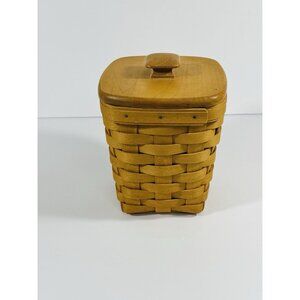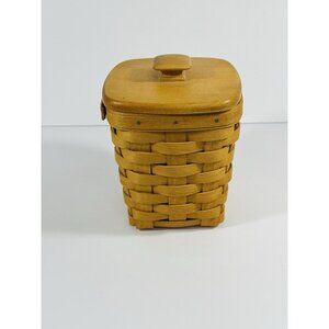 Longaberger 1997 Small Spoon Basket Brown With Woodcrafts Knob Lid 6” Vintage