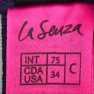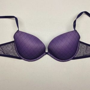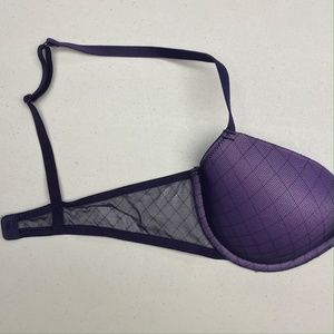 Plunge neckline, removable pushup padding, straps can be worn as racerback style. This bra is in excellent gently used condition.