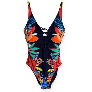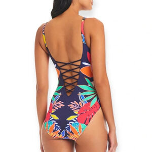 Bleu Rod Beattie multicolor one piece swimsuit COLOR FIELD LACE DOWN ONE-PIECE 8