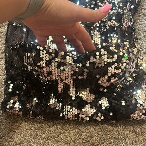Arden B Black and Silver Sequin Strapless Mini Dress Small