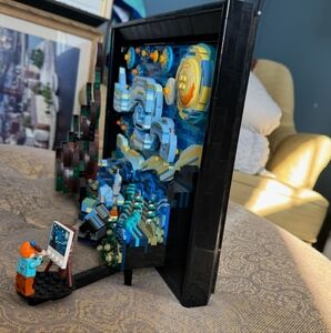 Starry night - includes an artist mini figure with an art easel and paintbrush. Artist mini-figure is on a pivoting arm. The set itself is made up of many smaller pieces that are combined, making it quite strong and durable. There is a frame made around the painting as well. Overall, a great set, 10/10