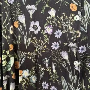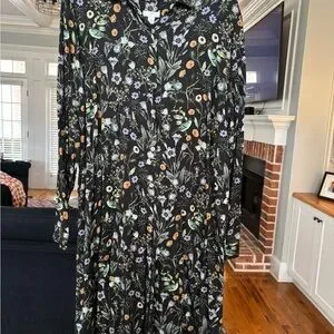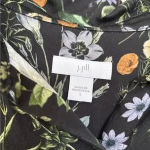 Size Large. Gorgeous JJill shirtdress with a botanical pattern on a black background. Excellent condition. Worn once for a work event in October. Purchased in October.